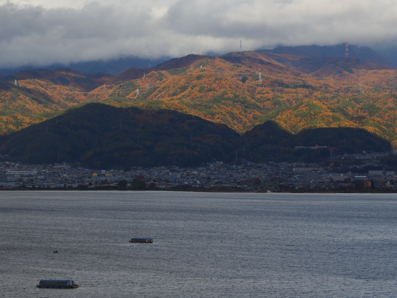 途中、八ヶ岳はどうかな〜と思い諏訪湖のサービスエリアに立ち寄るもガスってました。