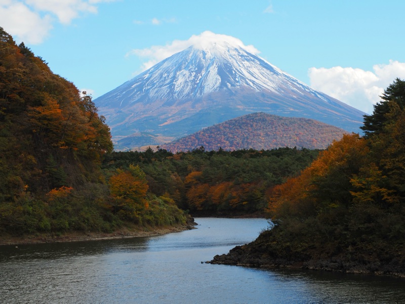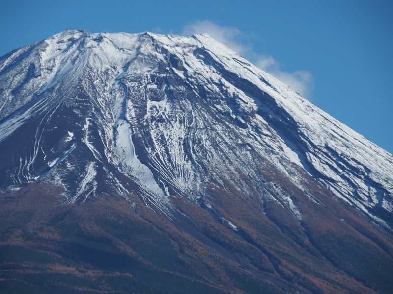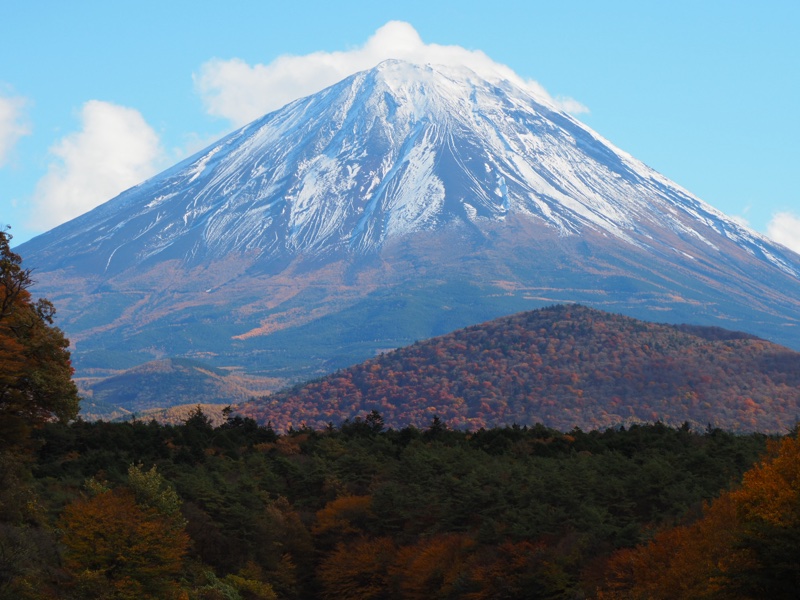 紅葉と富士山が綺麗です。こういう写真は難しいんですよね〜。青空を綺麗に撮ろうとすると手前の紅葉がつぶれるし、紅葉を綺麗に撮ろうとすると青空がとびます。