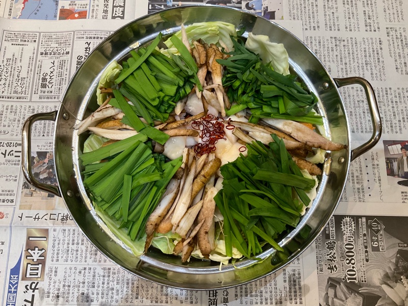 今週はゴボウたっぷりのとんこつ醤油モツ鍋です。