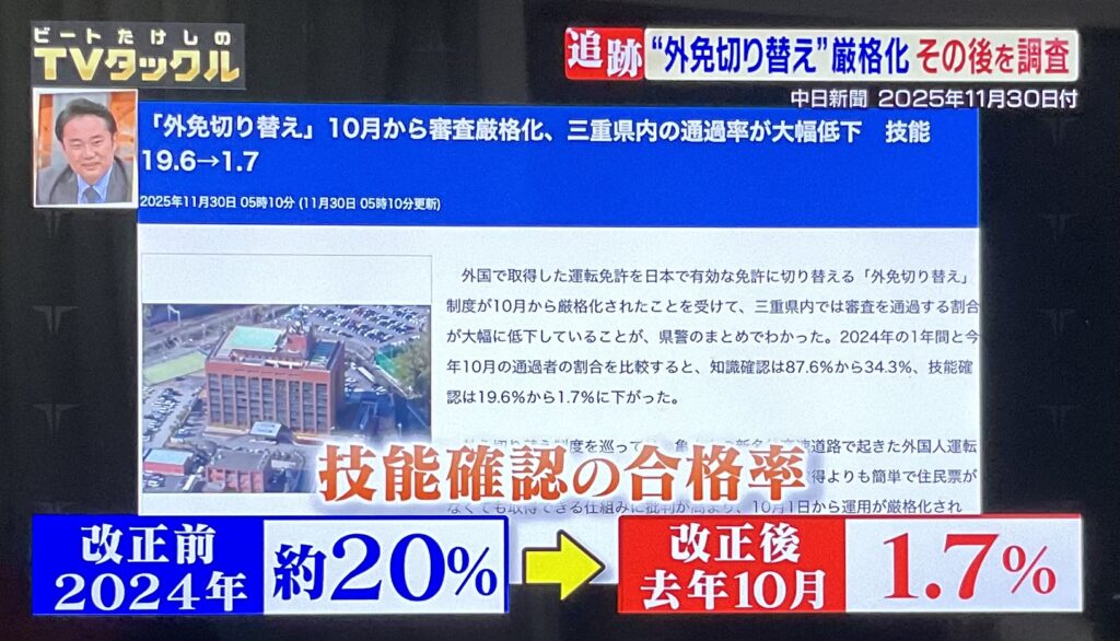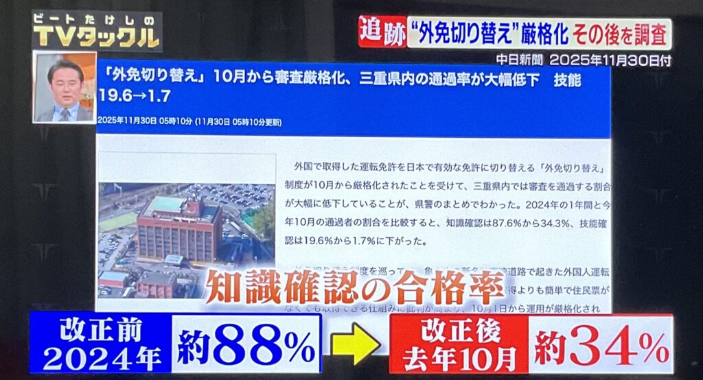 昨日、TVタックルで外免切替の厳格化がニュースになっていました。