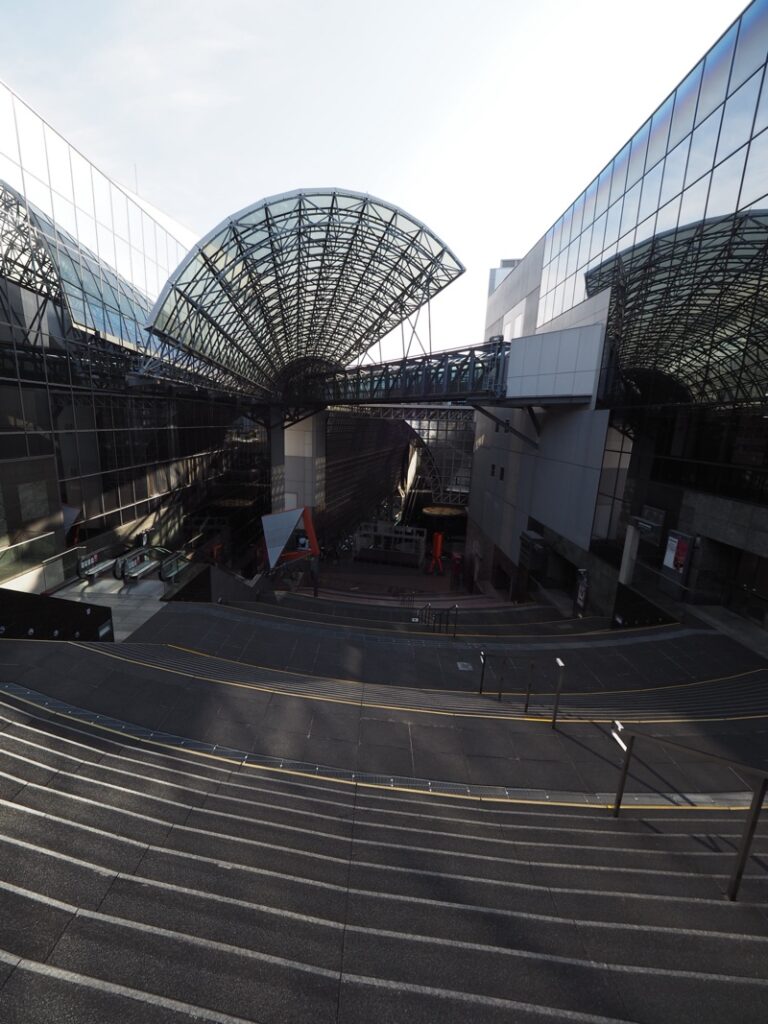新幹線でとりあえずは京都へ。朝一6:00の新幹線だったので8:00には京都に着きました!とりあえず、午前中は京都を巡ろうと駅を歩いたら階段で展望フロアに出れるみたいだったので登りました。
