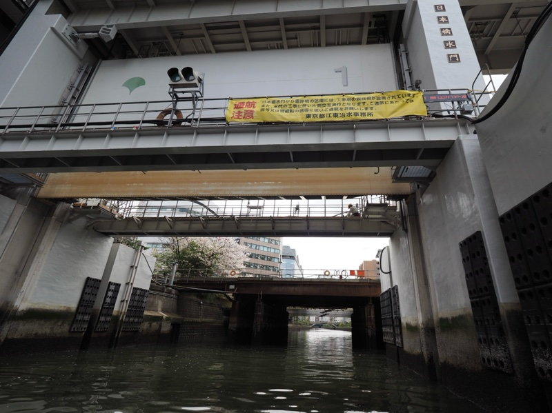 日本橋水門を通ります。実は東京は川の都…というより水路の都です。江戸に物流はほぼ水路です。