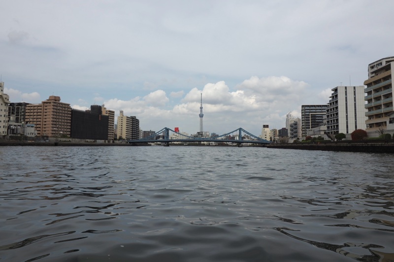 隅田川を浅草方面に遡ります。スカイツリーと清洲橋。清洲橋は綺麗ですね。