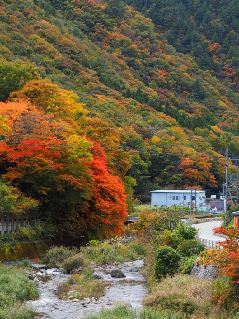 山道に入ると紅葉が間近ですごく綺麗。ワクワクしながら車を走らせます。