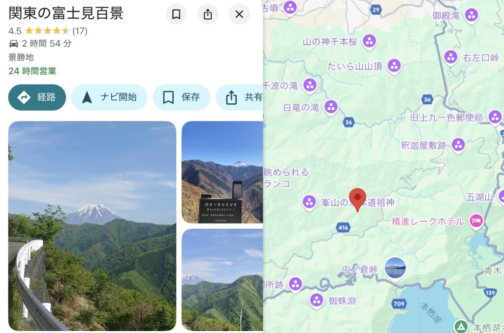 グーグルマップで適当にあたりをつけて向かいました。とりあえず、この関東の富士百景って所に行ってみようと思いました。