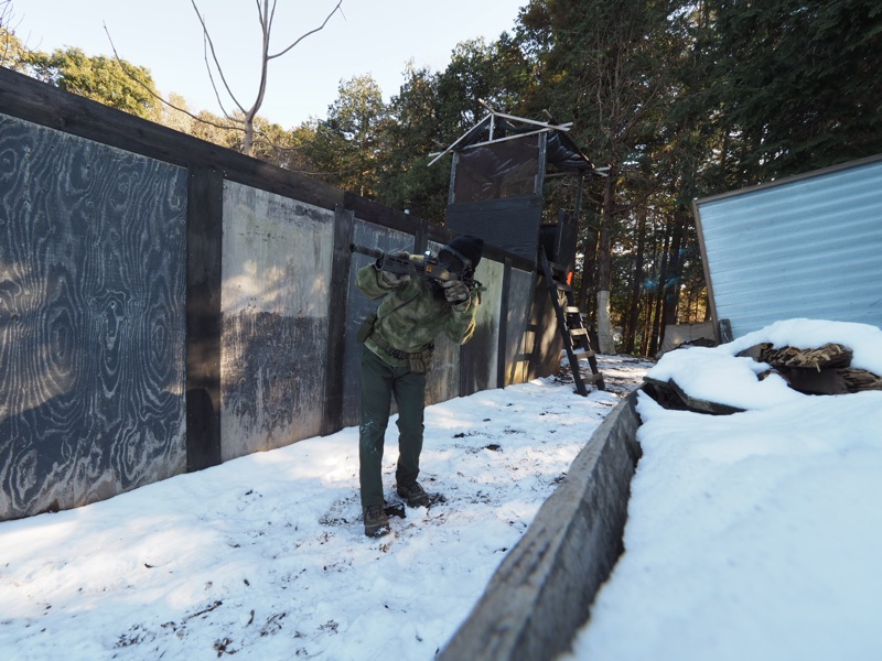 先日、雪が降った後にサバゲーフィールドに行きました。