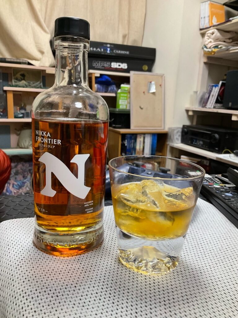 ニッカフロンティア。コレをロックでちょっとだけ飲んでます。