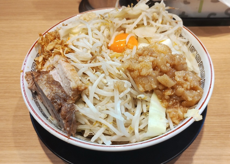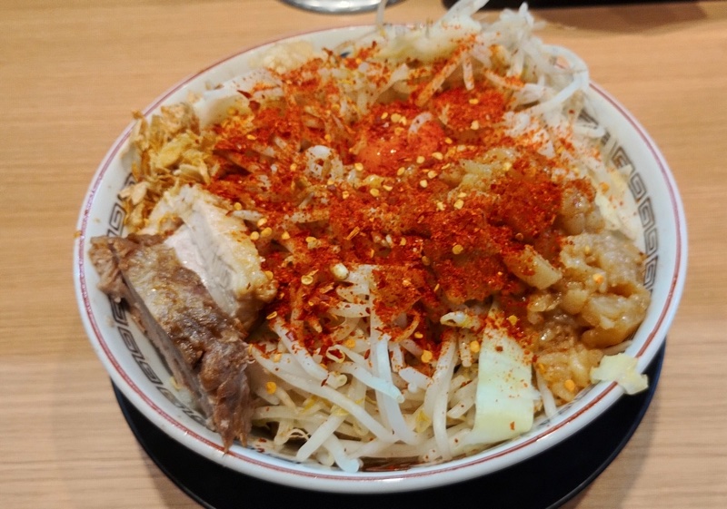 汁なしラーメン、ヤサイ、アブラマシマシ、カラメです。
